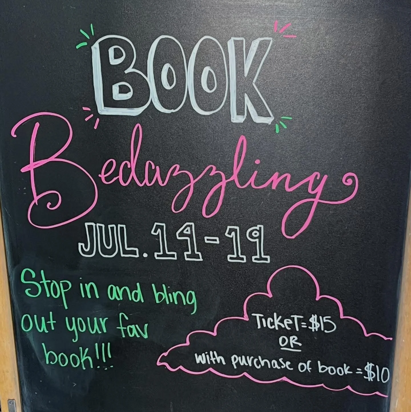 Bedazzle Your Books at Skylark Bookshop! Monday, July 14, 2025 10:00 AM 10:00 Saturday, July 19, 2025 6:00 PM 18:00 The District 11 South 10th Street Columbia, MO, 65201 United States (map) Google Calendar ICS Through the week of July 14th- July 19th, stop in to bling out your favorite book cover! A ticket will allow you access to our Bedazzling Kit for an hour. Tickets are $15 or $10 with the purchase of a book! Call ahead to reserve a time at the table.